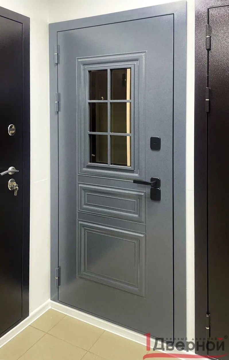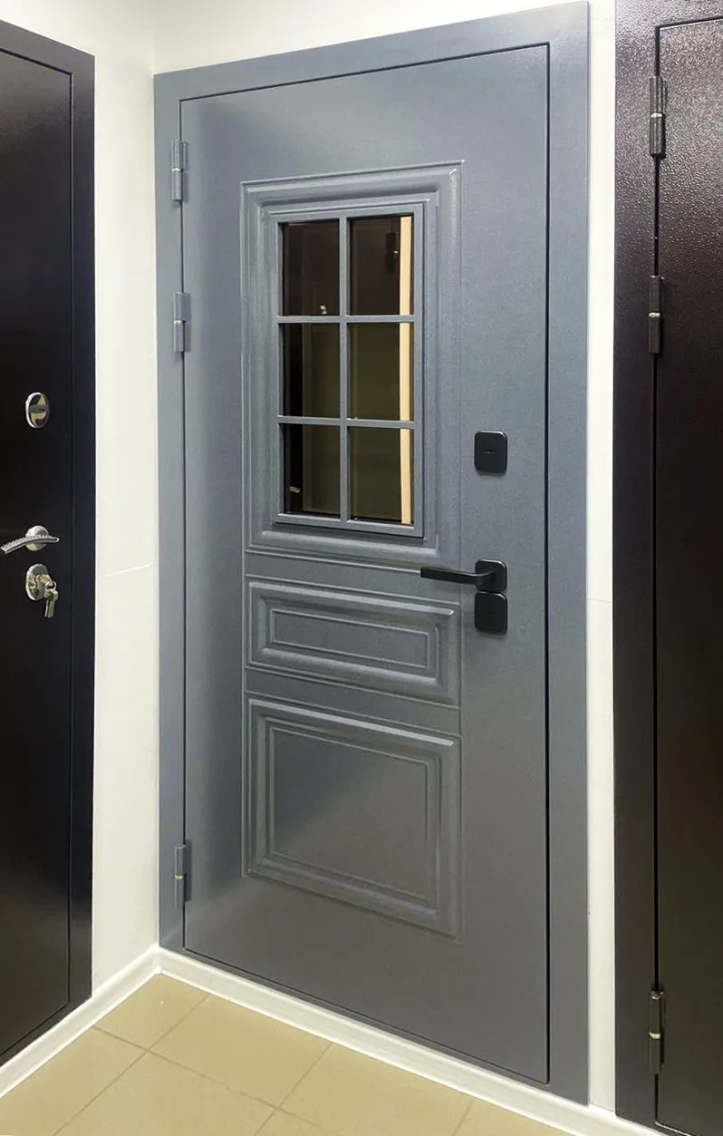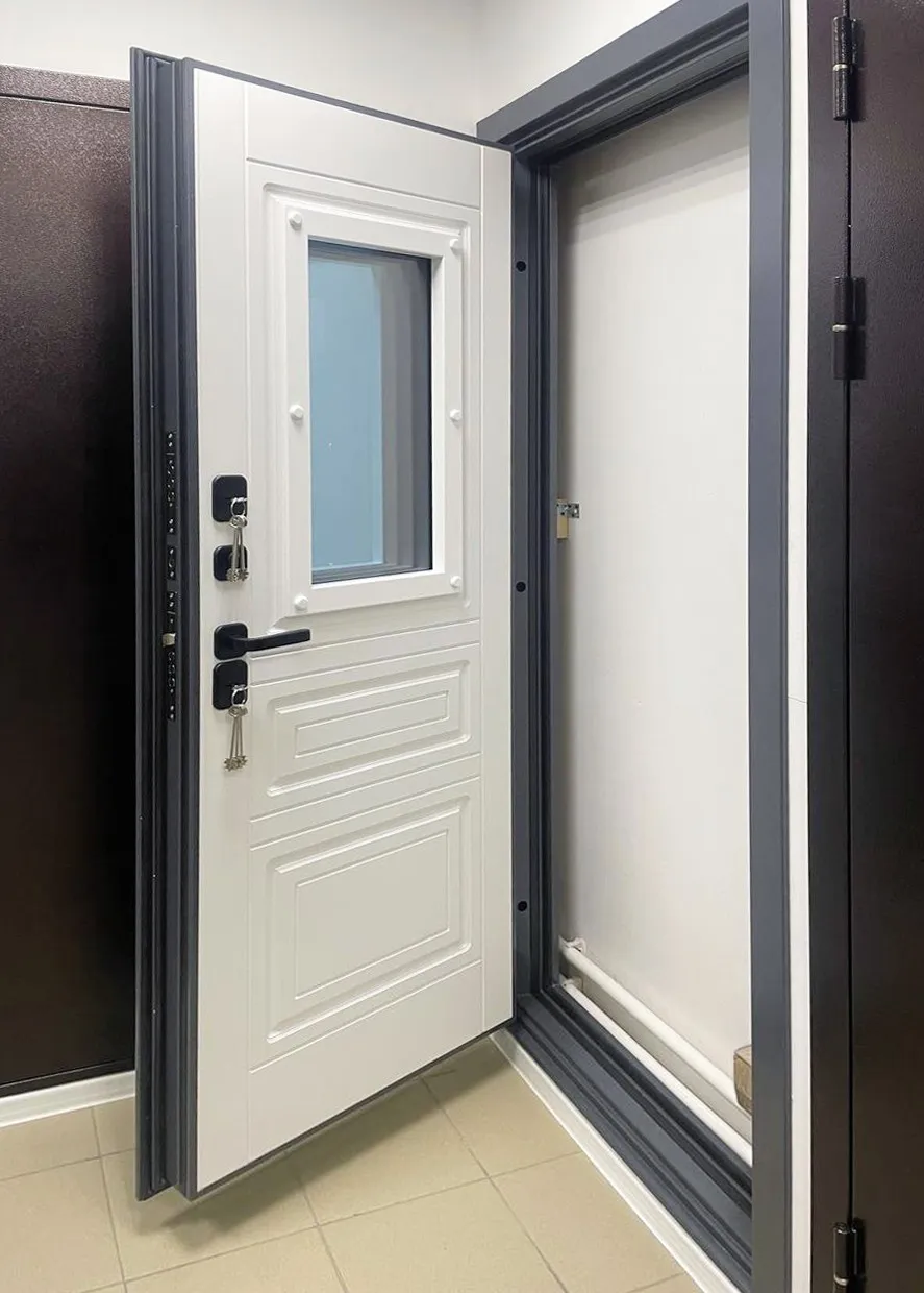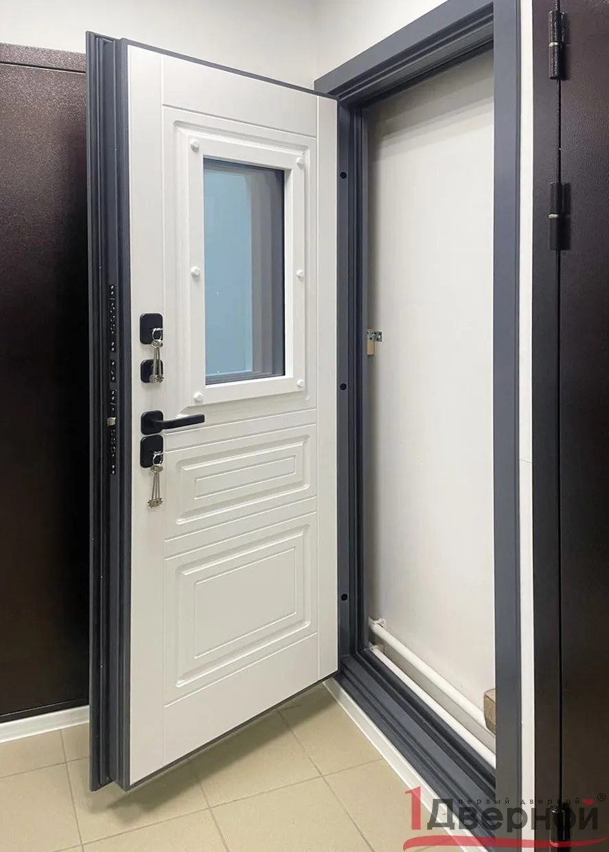 Модель "Термо Ш1" - разработана специально для эксплуатации в экстремальных климатических условиях: От -30°С до +40°С (по расчетным данным), в дождь, снег и зной она будет сохранять в вашем доме комфорт и уют. Дверной короб состоит из двух рам - внутренней и наружной, между ними терморазрыв. Исключены мостики холода в замках. Нет глазка.